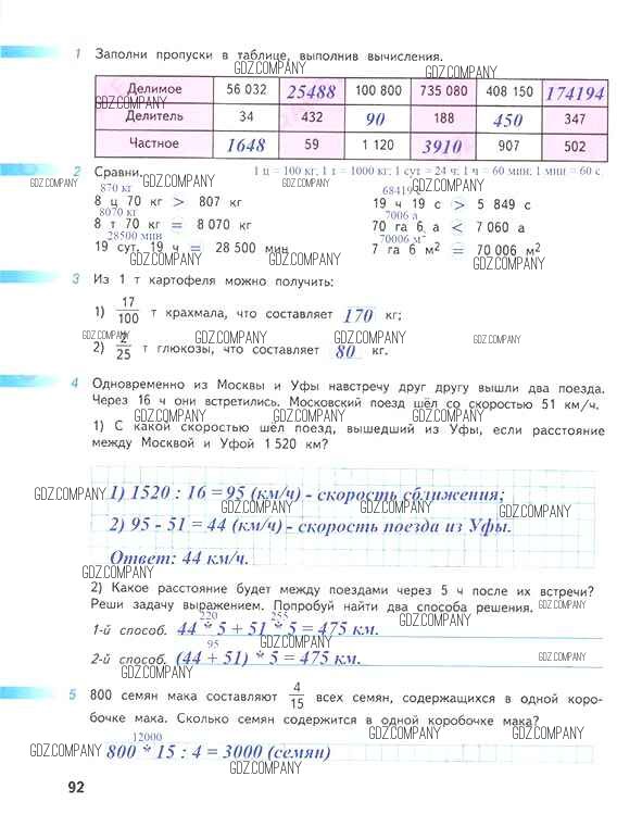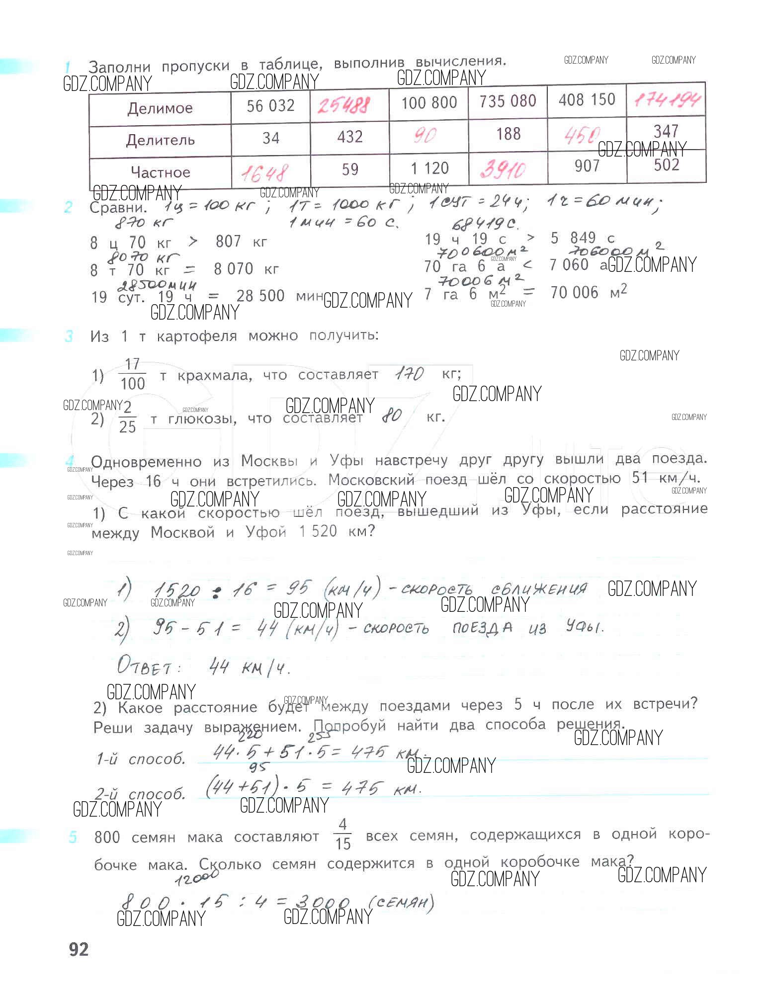 Здесь готовые ответы по Математике за 4 (четвертый) класс от Дорофеев, Миракова, Бука Рабочая тетрадь Перспектива (издательство: Просвещение от 2017 г.) № 92