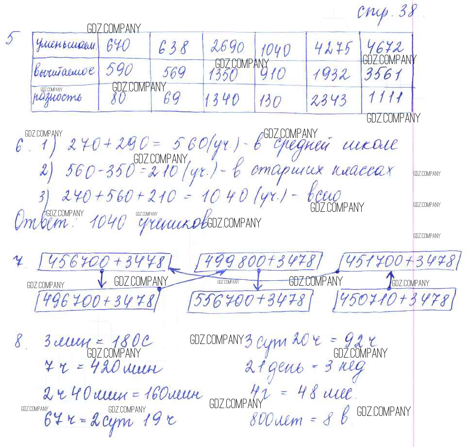 Здесь готовые ответы по Математике за 4 (четвертый) класс от Кремнева Рабочая тетрадь УМК (издательство: Экзамен от 2018 г.) № 38