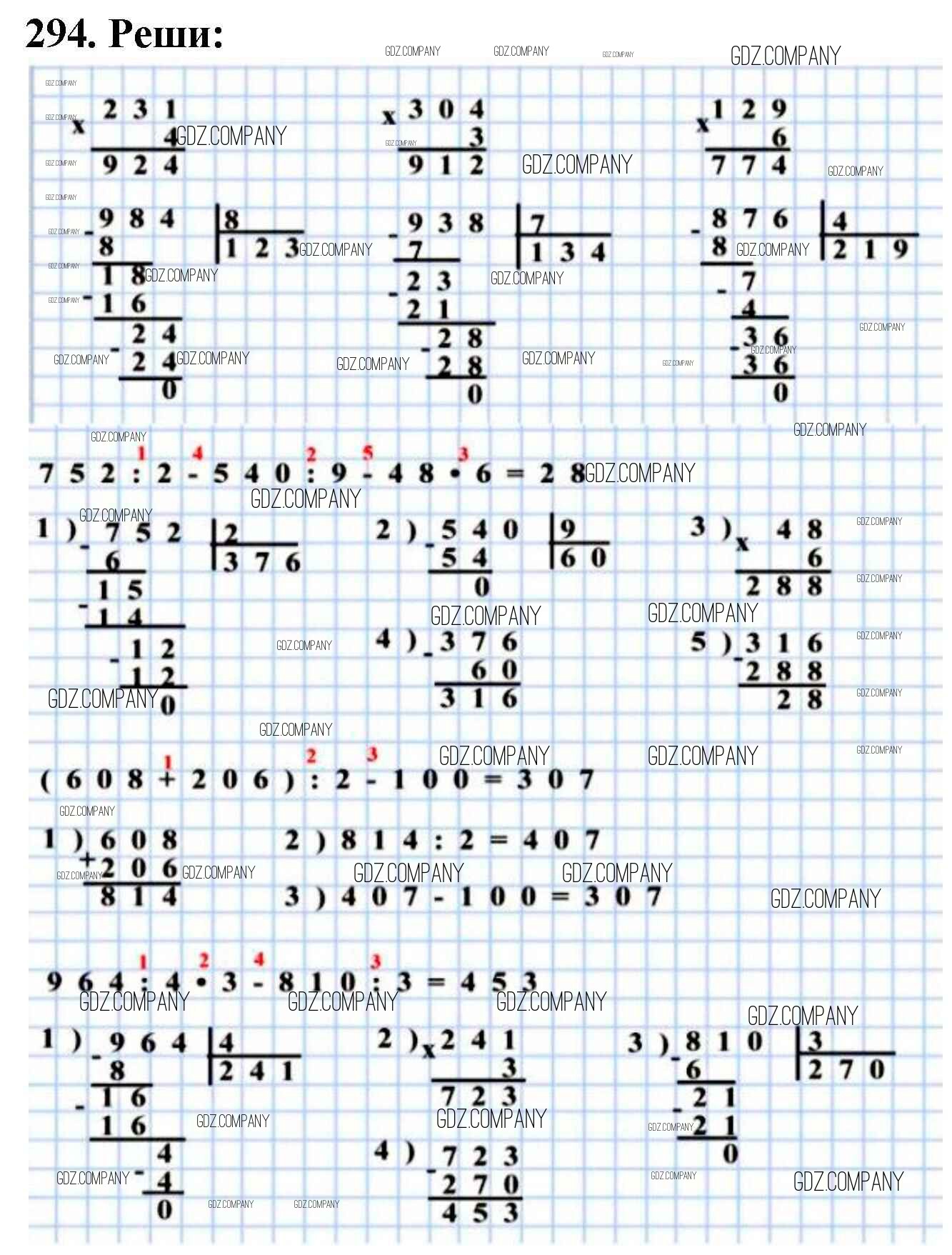 Здесь готовые ответы по Математике за 4 (четвертый) класс от Моро, Бантова, Бельтюкова, Волкова, Степанова Учебник Школа России (издательство: Просвещение от 2015 г.) № 294