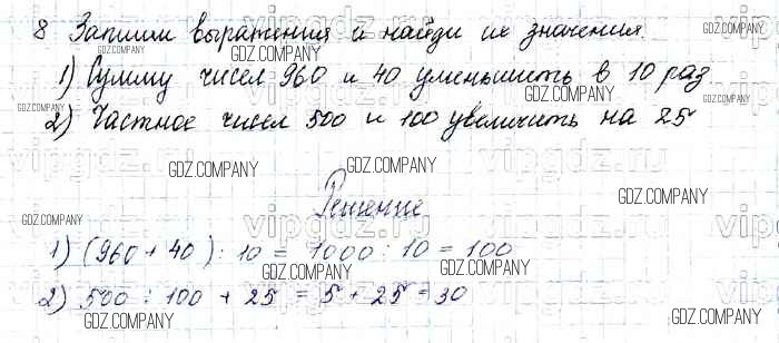Здесь готовые ответы по Математике за 4 (четвертый) класс от Моро, Бантова, Бельтюкова, Волкова, Степанова Учебник Школа России (издательство: Просвещение от 2015 г.) № 8