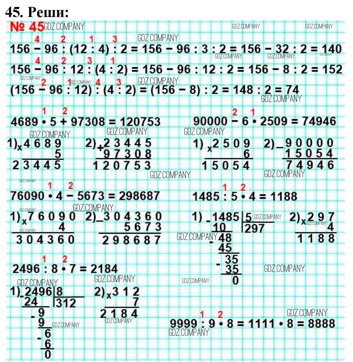 Здесь готовые ответы по Математике за 4 (четвертый) класс от Моро, Бантова, Бельтюкова, Волкова, Степанова Учебник Школа России (издательство: Просвещение от 2015 г.) № 45