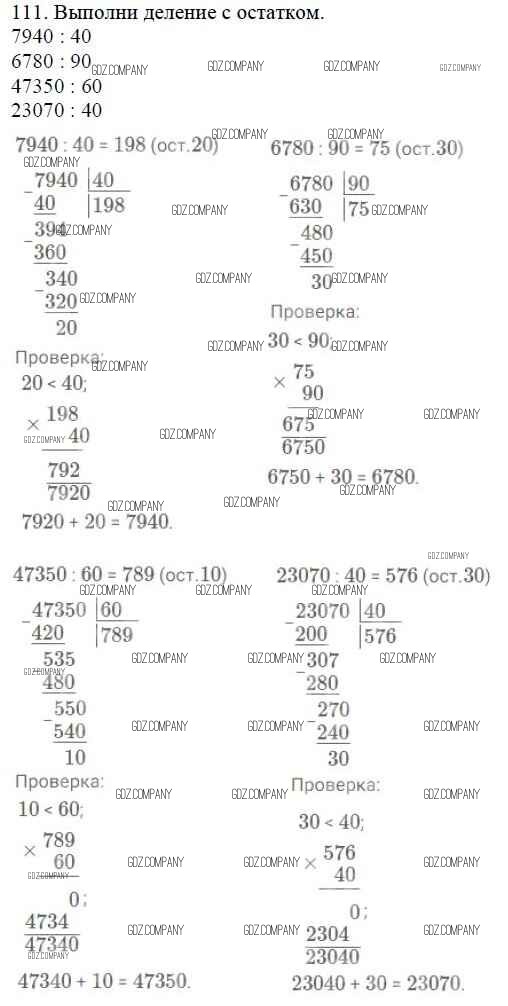 Здесь готовые ответы по Математике за 4 (четвертый) класс от Моро, Бантова, Бельтюкова, Волкова, Степанова Учебник Школа России (издательство: Просвещение от 2015 г.) № 111