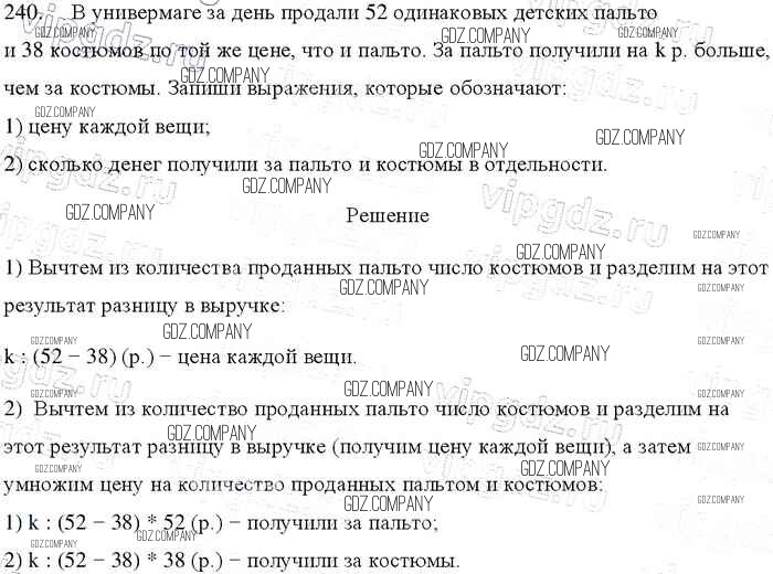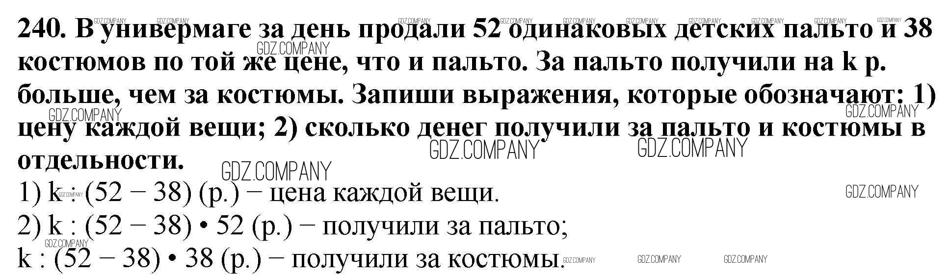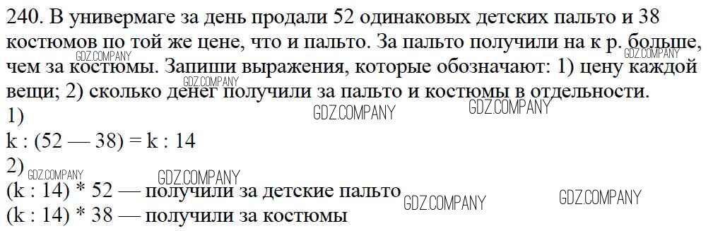 Здесь готовые ответы по Математике за 4 (четвертый) класс от Моро, Бантова, Бельтюкова, Волкова, Степанова Учебник Школа России (издательство: Просвещение от 2015 г.) № 240