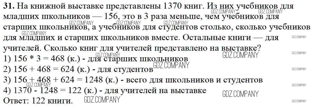 Здесь готовые ответы по Математике за 4 (четвертый) класс от Моро, Бантова, Бельтюкова, Волкова, Степанова Учебник Школа России (издательство: Просвещение от 2015 г.) № 31