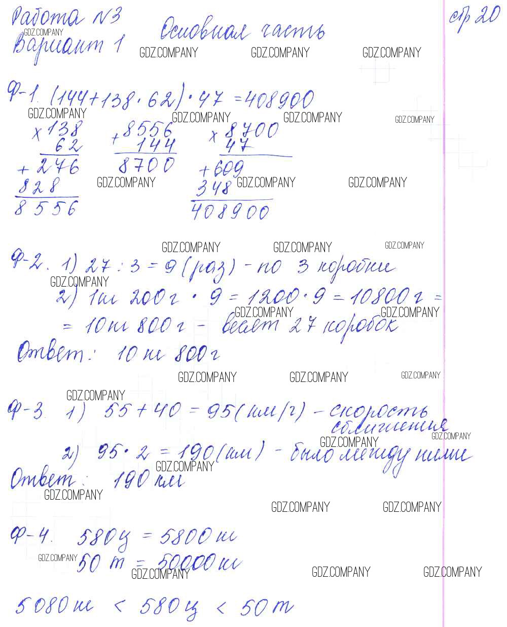 Здесь готовые ответы по Математике за 4 (четвертый) класс от Нефедова Контрольные и диагностические работы Планета знаний (издательство: Аст/Астрель от 2016 г.) № 20