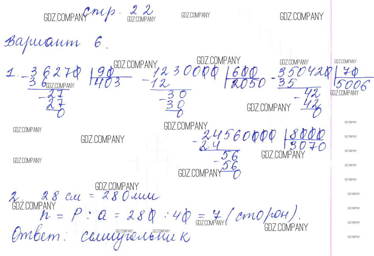 Здесь готовые ответы по Математике за 4 (четвертый) класс от Рудницкая Контрольные работы УМК (издательство: Экзамен от 2014 г.) № 22