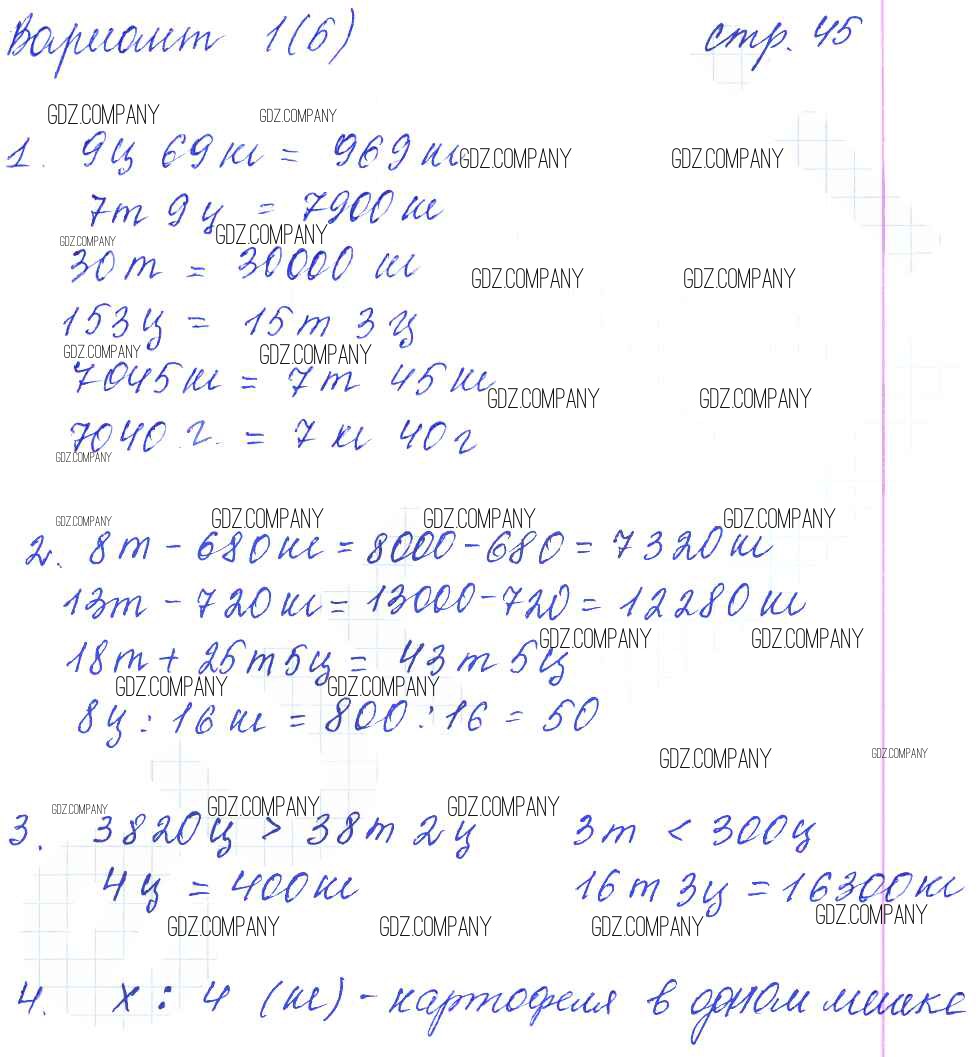 Здесь готовые ответы по Математике за 4 (четвертый) класс от Самсонова Тетрадь для самостоятельной работы УМК (издательство: Экзамен от 2011 г.) № 45