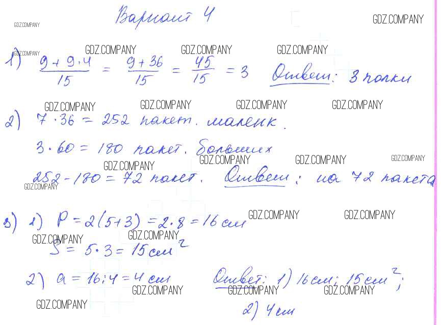 Здесь готовые ответы по Математике за 4 (второй) класс от Волкова Контрольные работы Школа России (издательство: Просвещение от 2017 г.) № Вариант 4