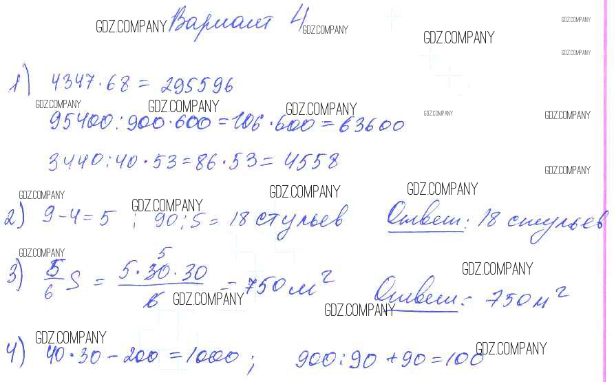 Здесь готовые ответы по Математике за 4 (второй) класс от Волкова Контрольные работы Школа России (издательство: Просвещение от 2017 г.) № Вариант 4