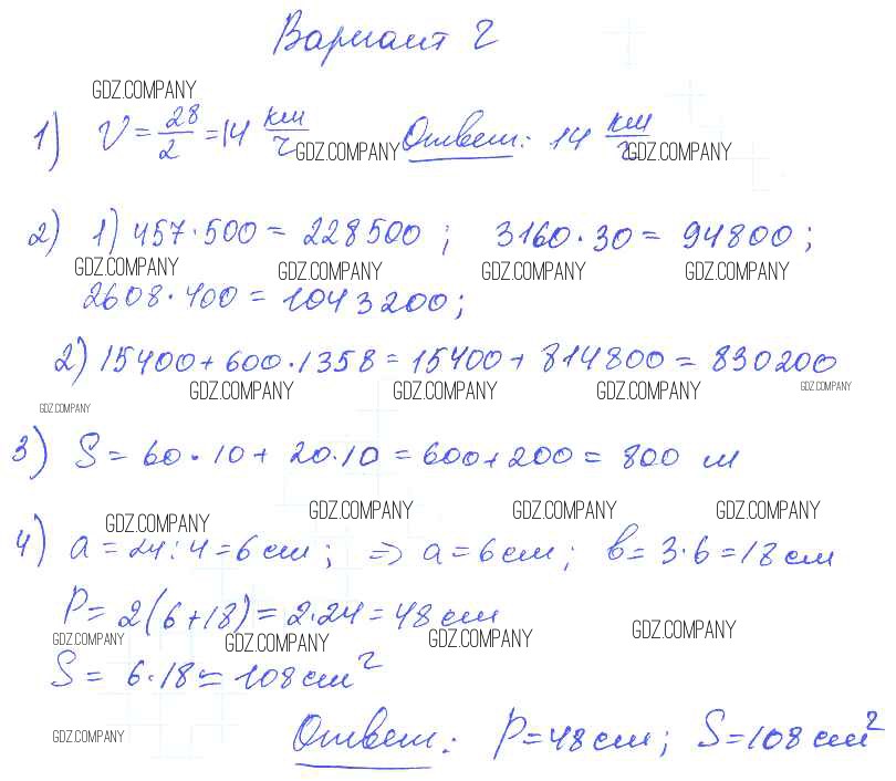 Здесь готовые ответы по Математике за 4 (второй) класс от Волкова Контрольные работы Школа России (издательство: Просвещение от 2017 г.) № Вариант 2
