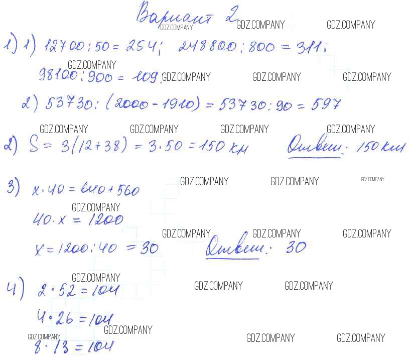 Здесь готовые ответы по Математике за 4 (второй) класс от Волкова Контрольные работы Школа России (издательство: Просвещение от 2017 г.) № Вариант 2