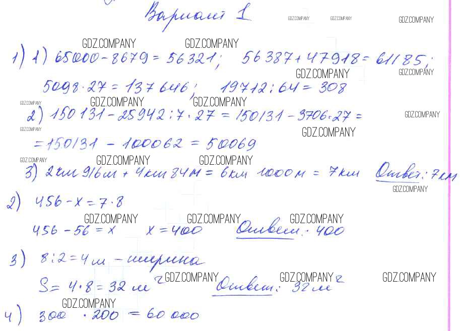 Здесь готовые ответы по Математике за 4 (второй) класс от Волкова Контрольные работы Школа России (издательство: Просвещение от 2017 г.) № Вариант 1