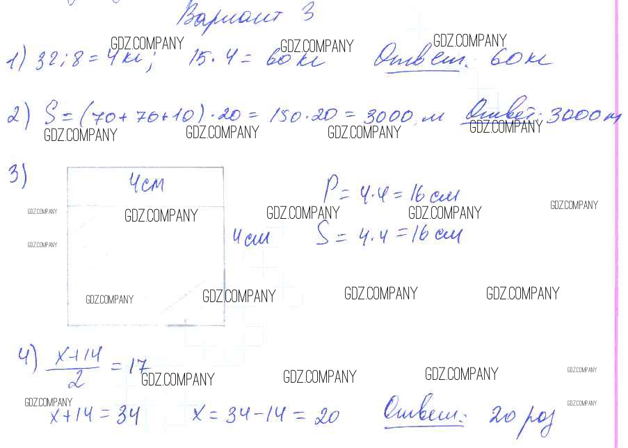Здесь готовые ответы по Математике за 4 (второй) класс от Волкова Контрольные работы Школа России (издательство: Просвещение от 2017 г.) № Вариант 3