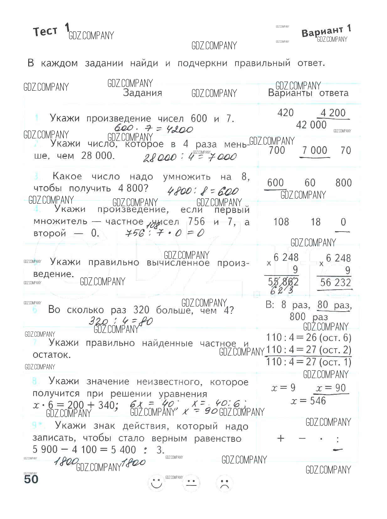 Здесь готовые ответы по Математике за 4 (четвертый) класс от Волкова Проверочные работы Школа России (издательство: Просвещение от 2014 г.) № 50