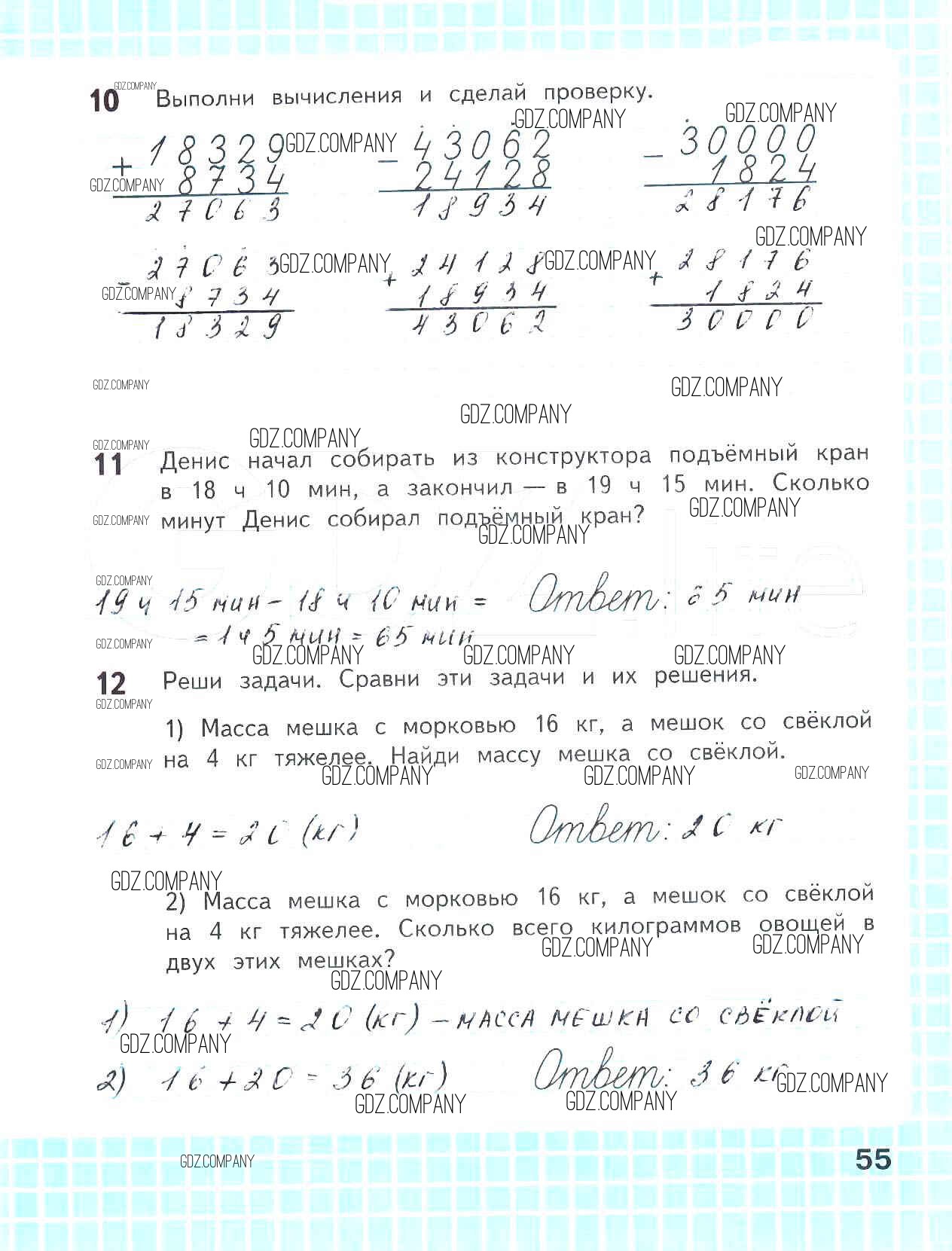 Здесь готовые ответы по Математике за 4 (четвертый) класс от Волкова Рабочая тетрадь Школа России (издательство: Просвещение от 2016 г.) № 55