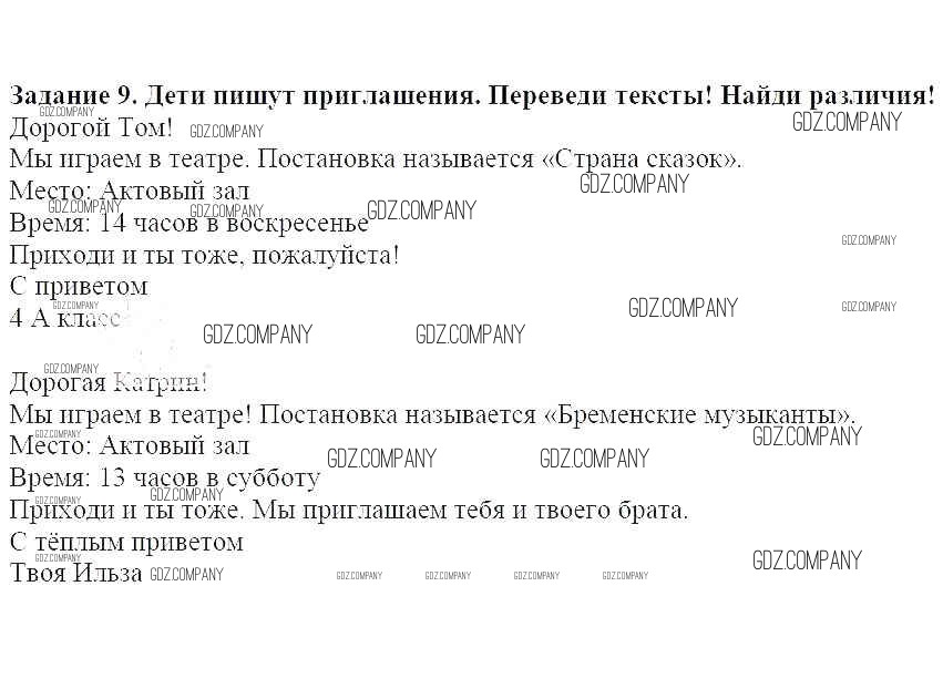Здесь готовые ответы по Немецкому языку за 4 (четвертый) класс от Гальскова, Гез Учебник Ритм (издательство: Дрофа от 2014 г.) № 9