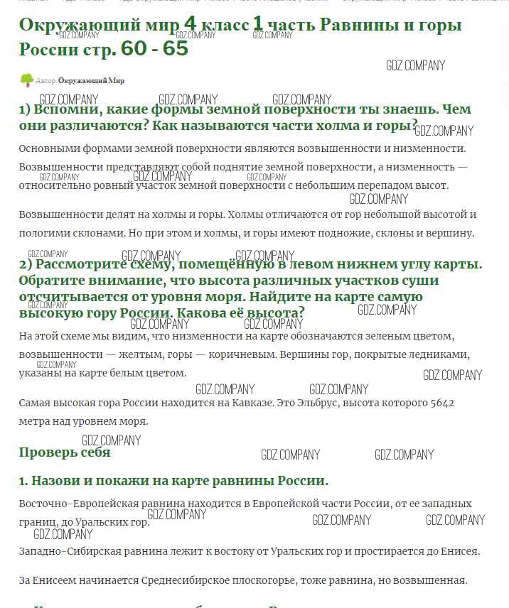 Здесь готовые ответы по Окружающему миру за 4 (четвертый) класс от Плешаков, Крючкова Учебник Школа России (издательство: Просвещение от 2013 г.) № 60