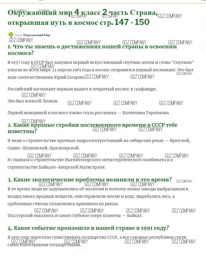 Здесь готовые ответы по Окружающему миру за 4 (четвертый) класс от Плешаков, Крючкова Учебник Школа России (издательство: Просвещение от 2013 г.) № 147