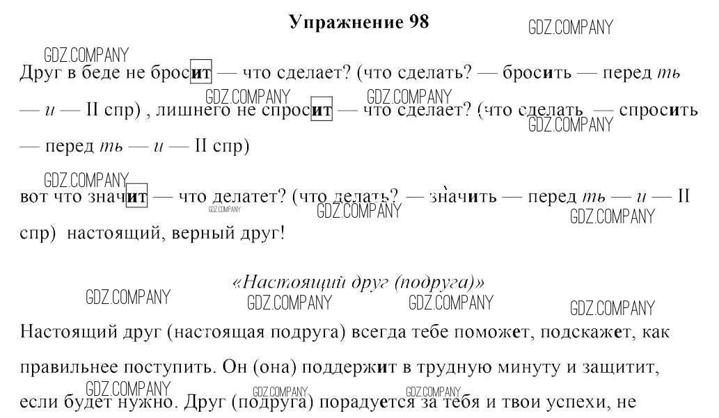 Здесь готовые ответы по Русскому языку за 4 (четвертый) класс от Антипова, Верниковская, Грабчикова Учебник (издательство: Национальный институт образования от 2018 г.) № 98