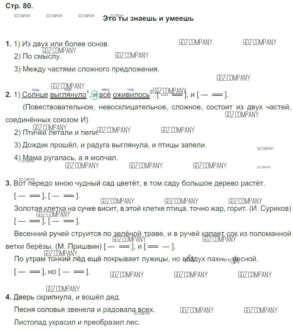 Здесь готовые ответы по Русскому языку за 4 (четвертый) класс от Бунеев, Бунеева, Пронина Учебник Школа 2100 (издательство: Баласс от 2016 г.) № 80