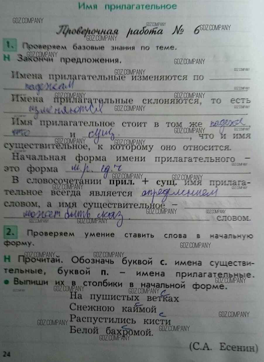 Здесь готовые ответы по Русскому языку за 4 (четвертый) класс от Бунеева Проверочные и контрольные работы Школа 2100 (издательство: Баласс от 2017 г.) № 24