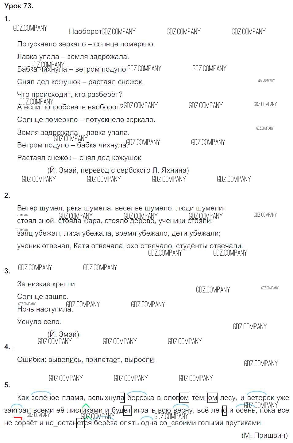 Здесь готовые ответы по Русскому языку за 4 (четвертый) класс от Иванов, Кузнецова, Петленко Учебник Начальная школа XXI века (издательство: Вентана-граф от 2013 г.) № 73