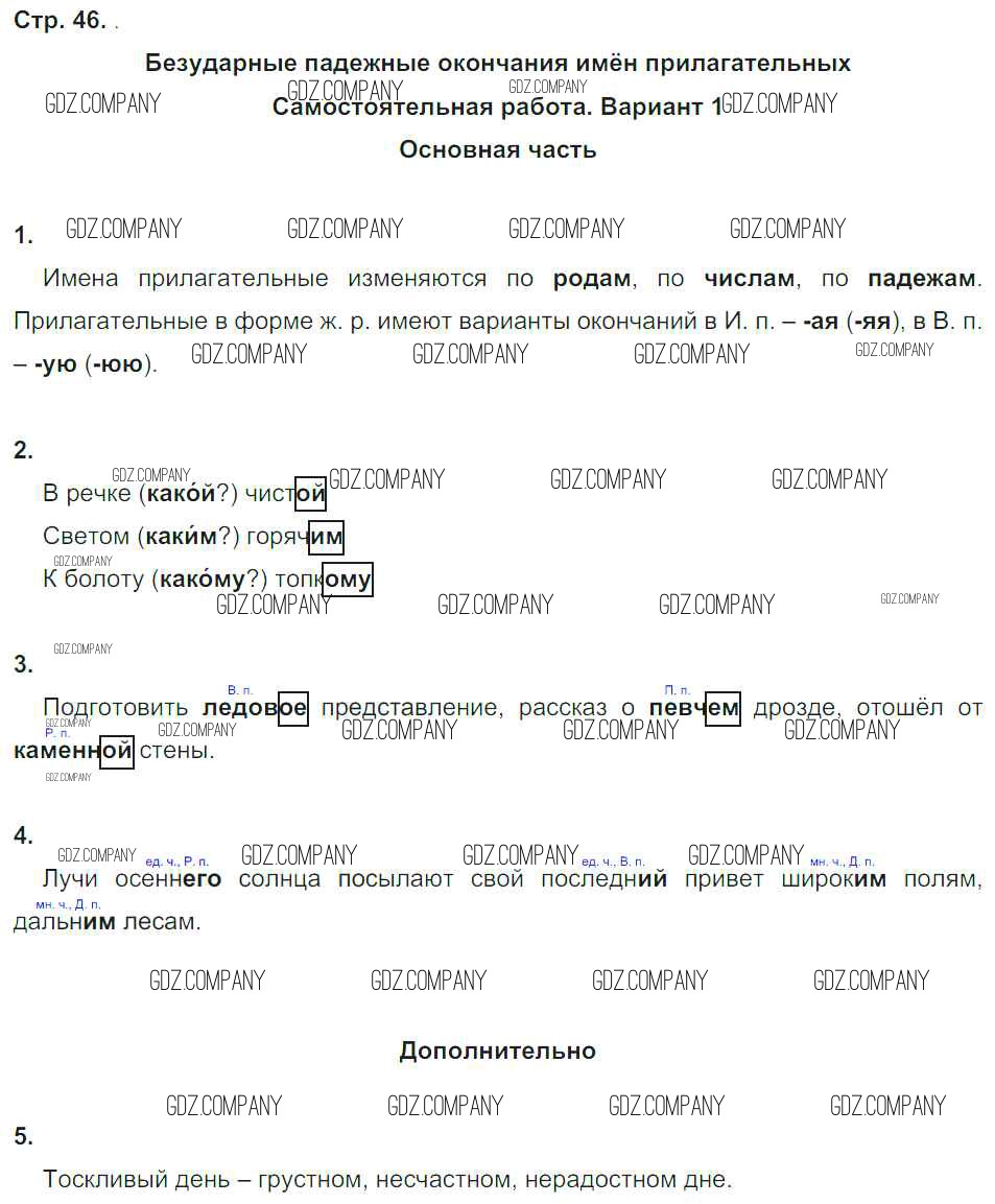 Здесь готовые ответы по Русскому языку за 4 (четвертый) класс от Калинина, Желтовская Тесты и самостоятельные работы для текущего контроля Планета знаний (издательство: Дрофа от 2017 г.) № 46