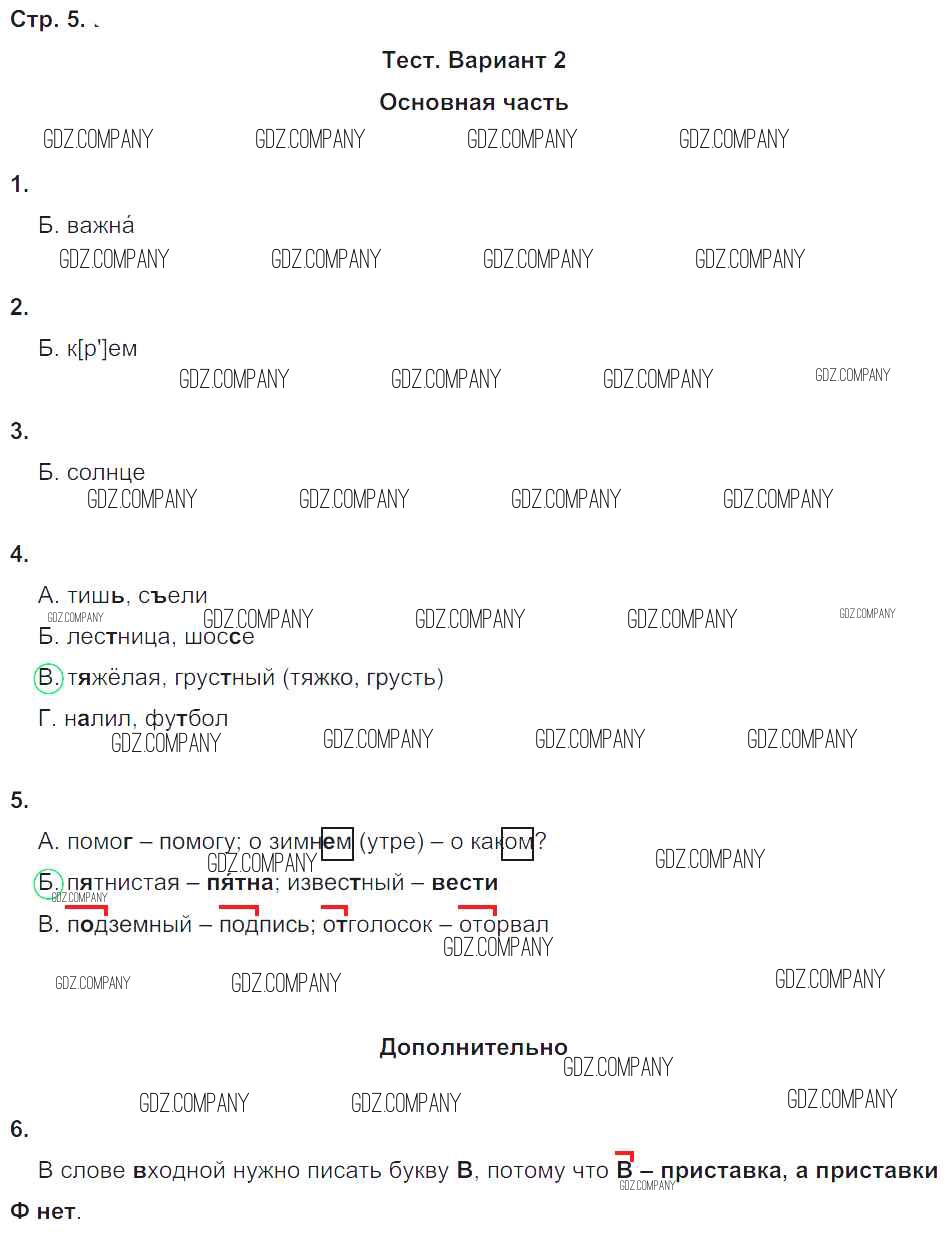 Здесь готовые ответы по Русскому языку за 4 (четвертый) класс от Калинина, Желтовская Тесты и самостоятельные работы для текущего контроля Планета знаний (издательство: Дрофа от 2017 г.) № 5