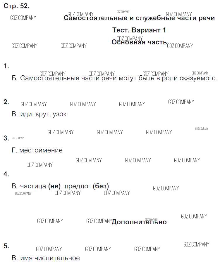 Здесь готовые ответы по Русскому языку за 4 (четвертый) класс от Калинина, Желтовская Тесты и самостоятельные работы для текущего контроля Планета знаний (издательство: Дрофа от 2017 г.) № 52