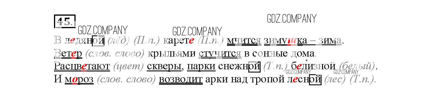 Здесь готовые ответы по Русскому языку за 4 (четвертый) класс от Канакина Рабочая тетрадь Школа России (издательство: Просвещение от 2013 г.) № 45