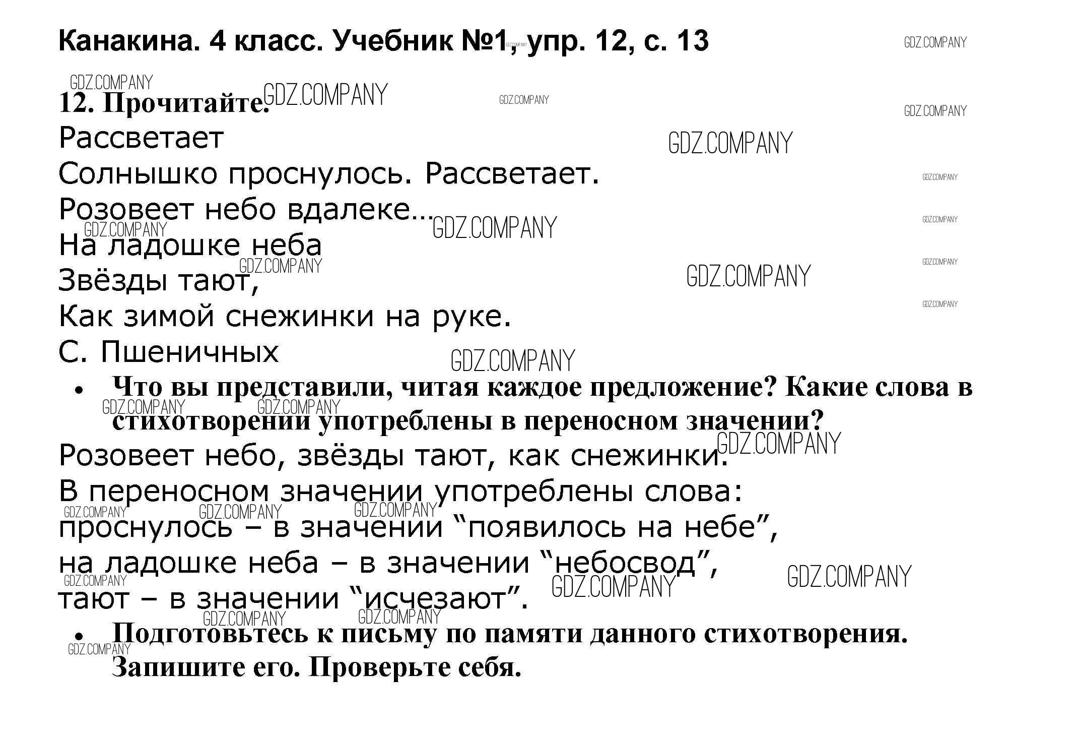Здесь готовые ответы по Русскому языку за 4 (четвертый) класс от Канакина, Горецкий Учебник Школа России (издательство: Просвещение от 2015 г.) № 12