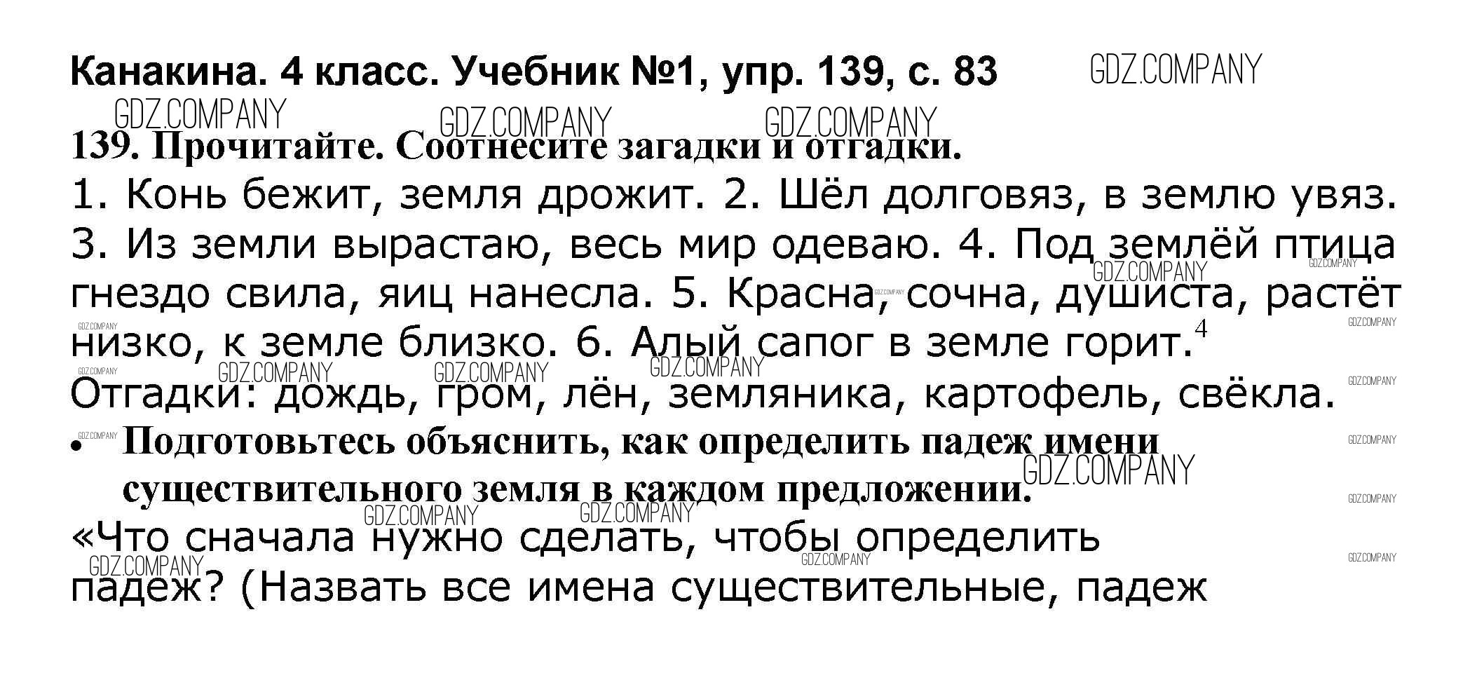 Здесь готовые ответы по Русскому языку за 4 (четвертый) класс от Канакина, Горецкий Учебник Школа России (издательство: Просвещение от 2015 г.) № 139
