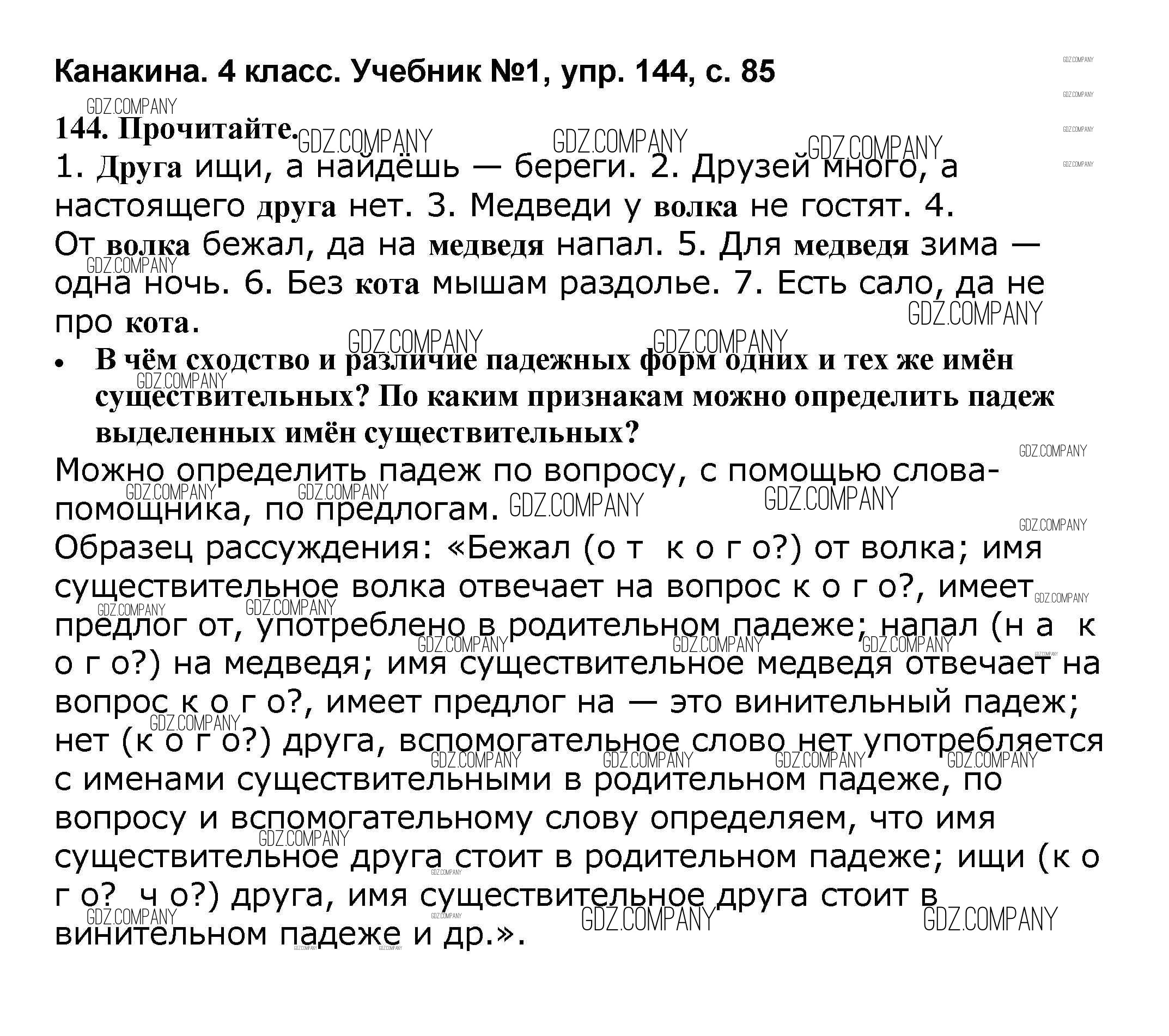 Здесь готовые ответы по Русскому языку за 4 (четвертый) класс от Канакина, Горецкий Учебник Школа России (издательство: Просвещение от 2015 г.) № 144