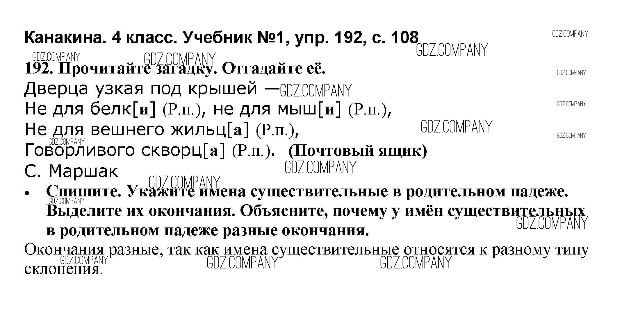 Здесь готовые ответы по Русскому языку за 4 (четвертый) класс от Канакина, Горецкий Учебник Школа России (издательство: Просвещение от 2015 г.) № 192