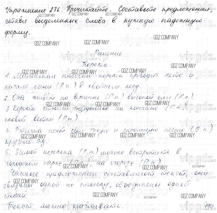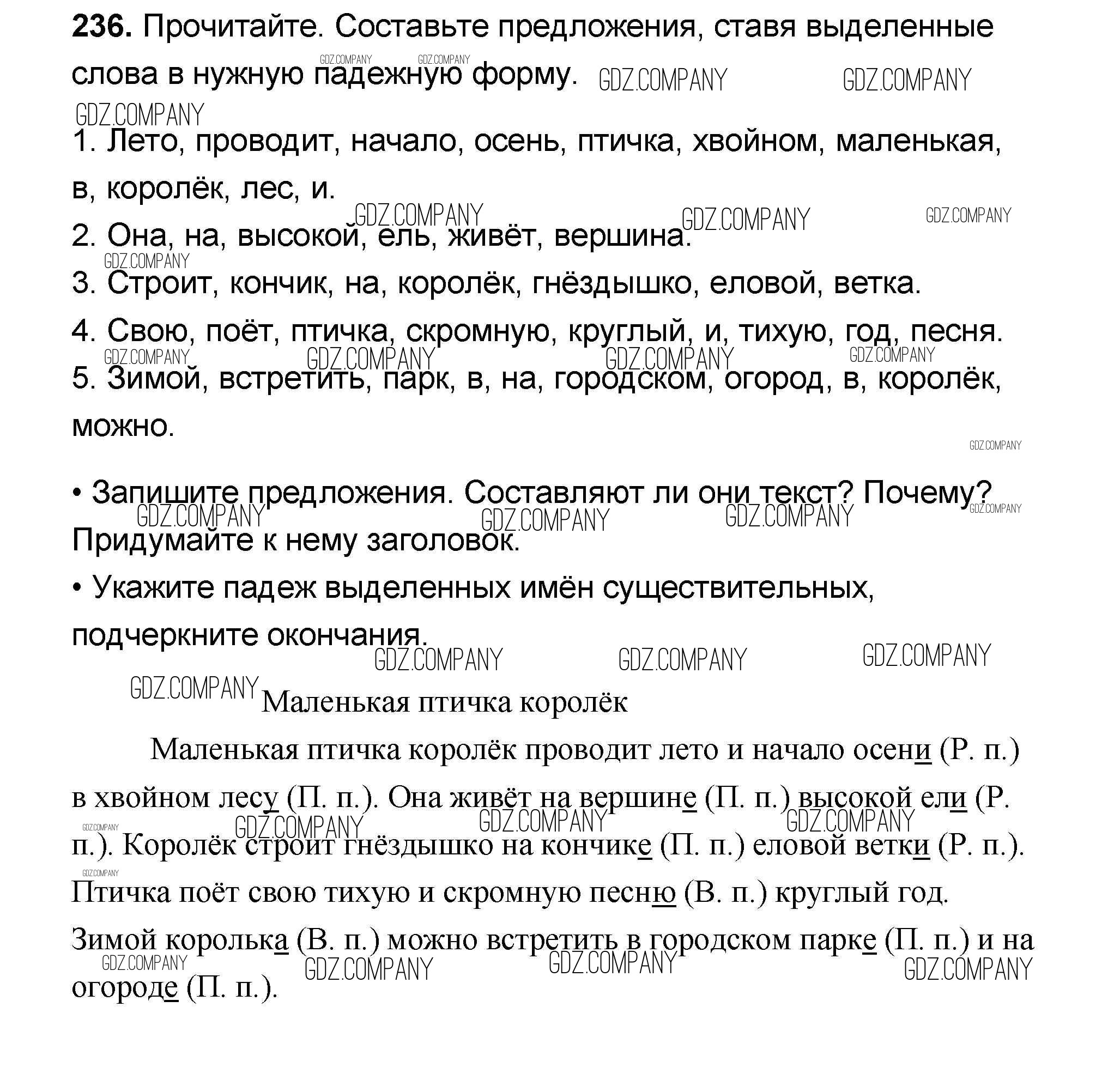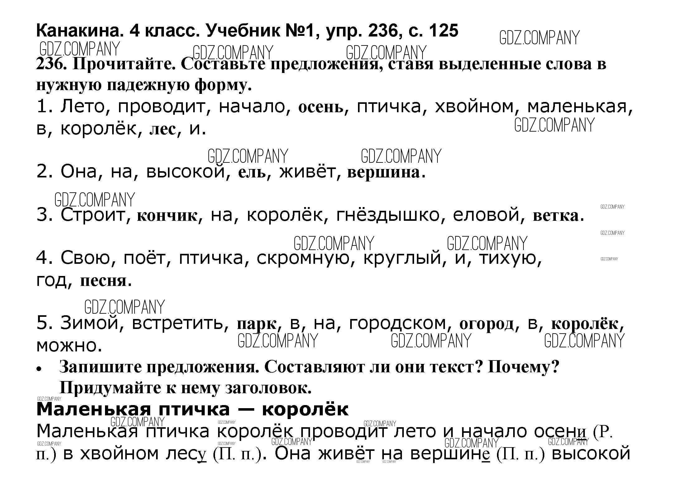 Здесь готовые ответы по Русскому языку за 4 (четвертый) класс от Канакина, Горецкий Учебник Школа России (издательство: Просвещение от 2015 г.) № 236