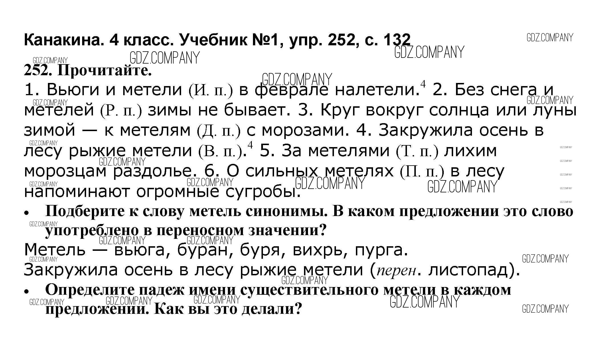 Здесь готовые ответы по Русскому языку за 4 (четвертый) класс от Канакина, Горецкий Учебник Школа России (издательство: Просвещение от 2015 г.) № 252