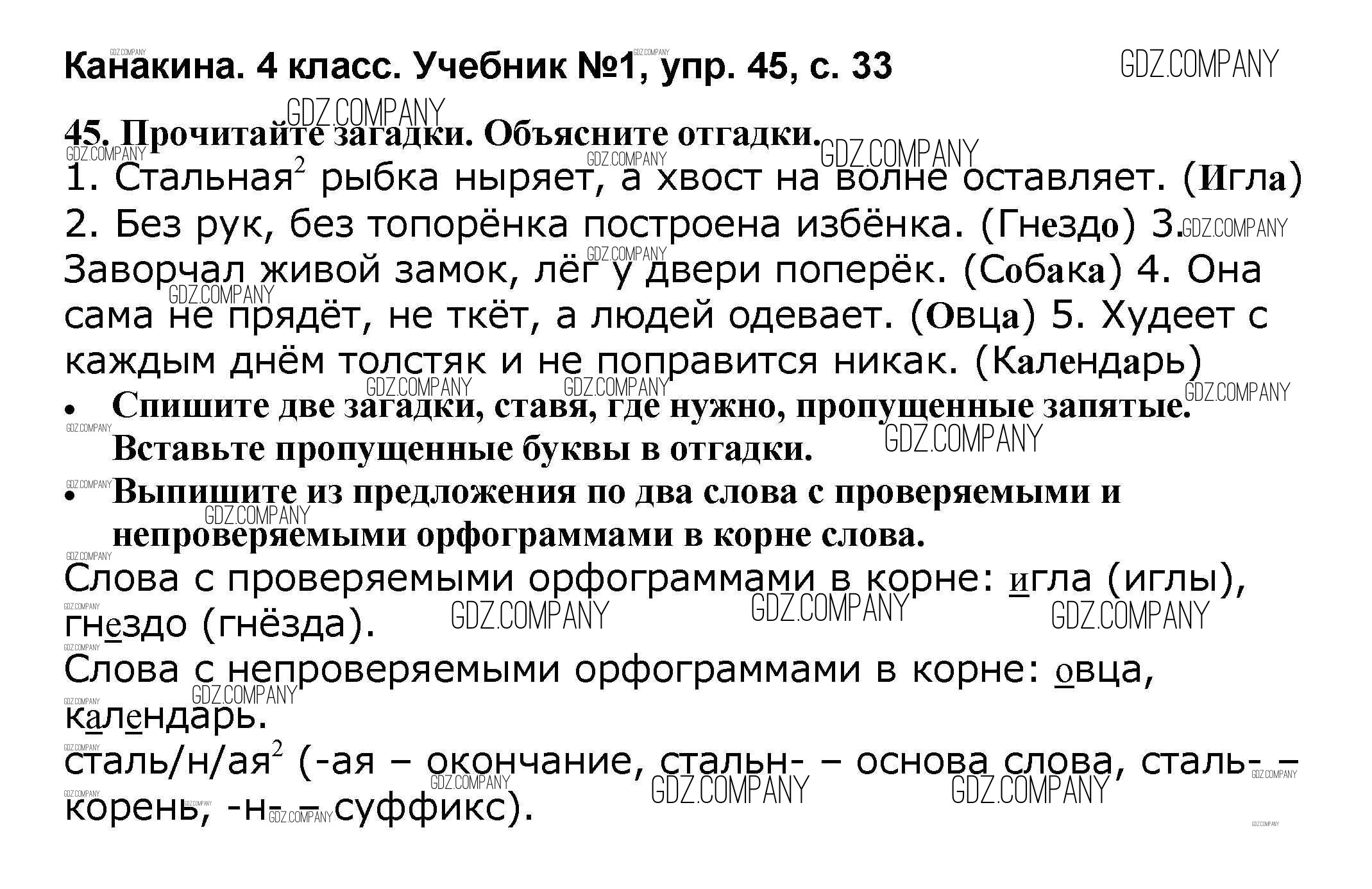 Здесь готовые ответы по Русскому языку за 4 (четвертый) класс от Канакина, Горецкий Учебник Школа России (издательство: Просвещение от 2015 г.) № 45