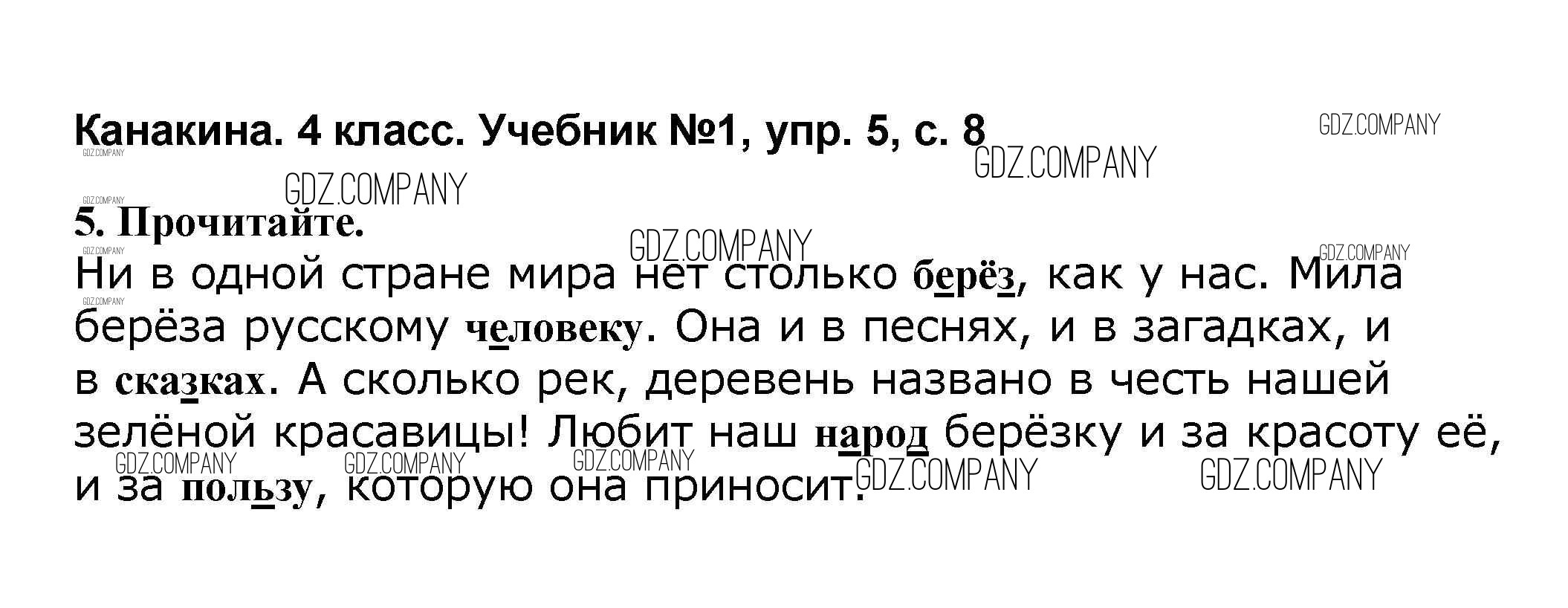 Здесь готовые ответы по Русскому языку за 4 (четвертый) класс от Канакина, Горецкий Учебник Школа России (издательство: Просвещение от 2015 г.) № 5