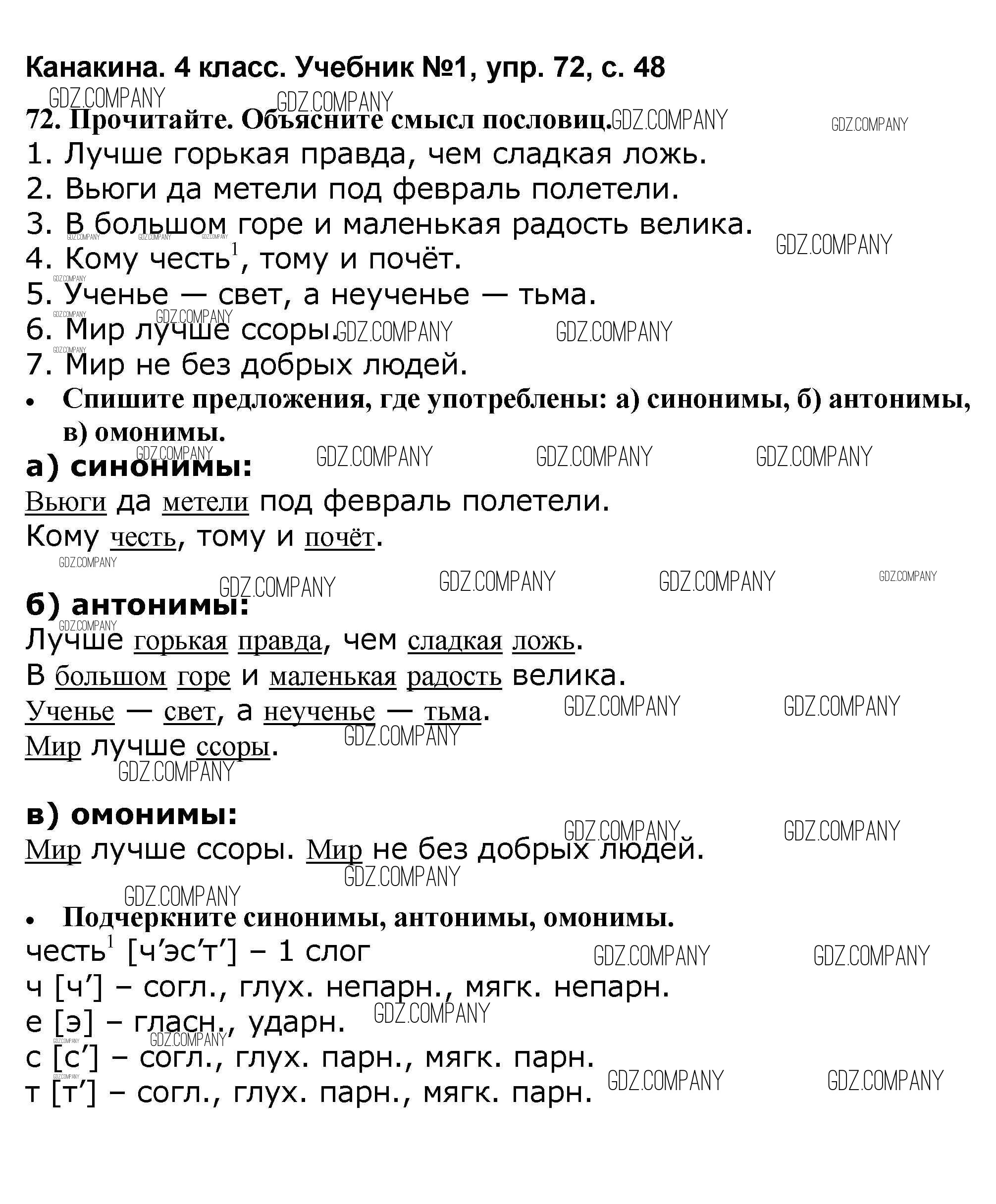 Здесь готовые ответы по Русскому языку за 4 (четвертый) класс от Канакина, Горецкий Учебник Школа России (издательство: Просвещение от 2015 г.) № 72