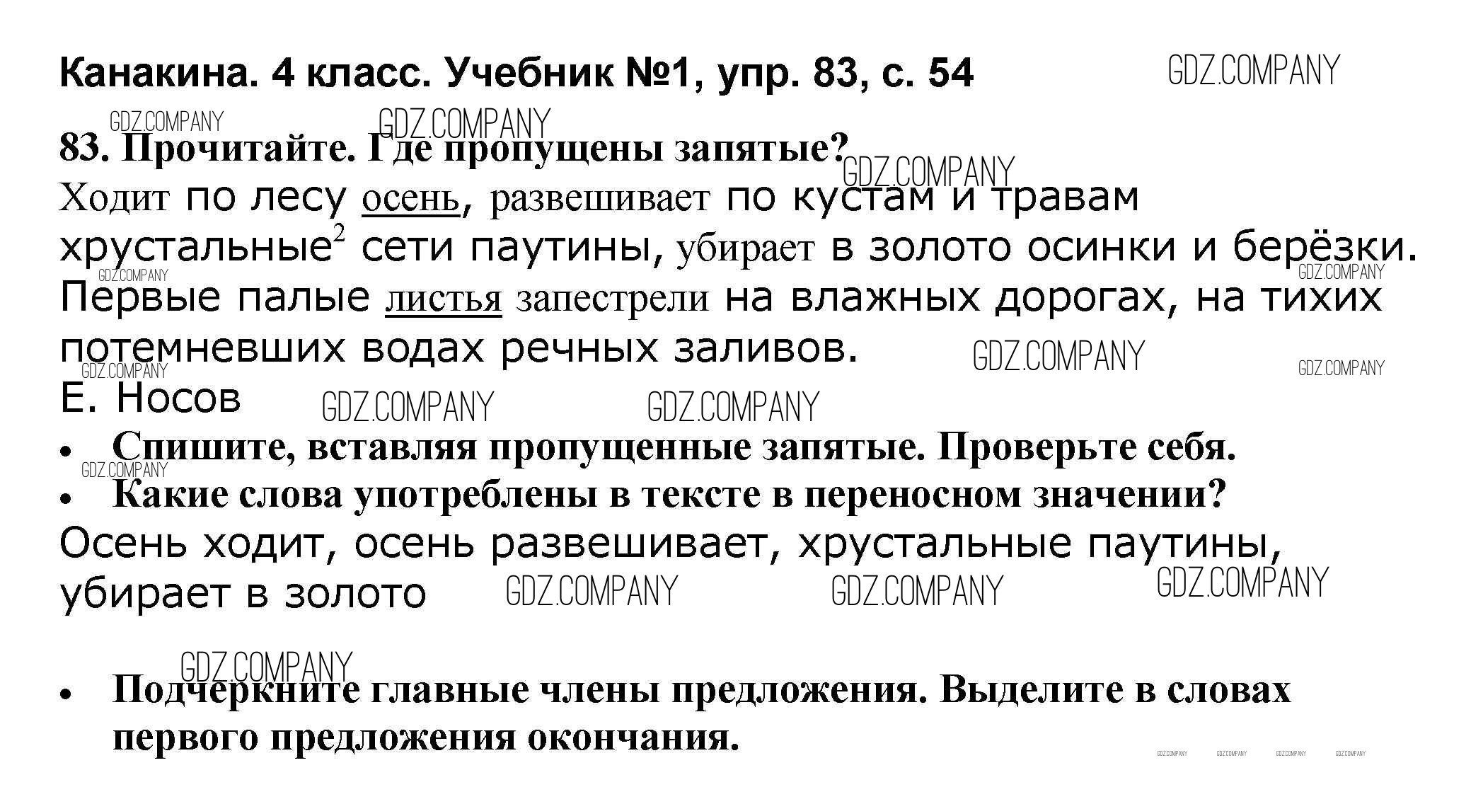 Здесь готовые ответы по Русскому языку за 4 (четвертый) класс от Канакина, Горецкий Учебник Школа России (издательство: Просвещение от 2015 г.) № 83