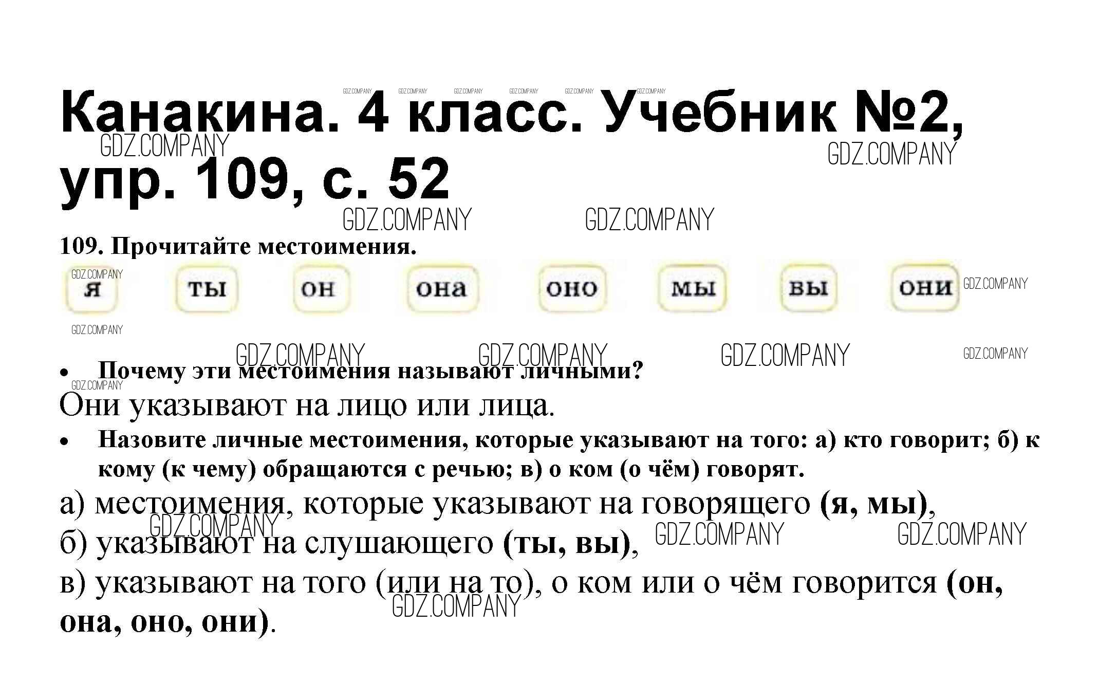 Здесь готовые ответы по Русскому языку за 4 (четвертый) класс от Канакина, Горецкий Учебник Школа России (издательство: Просвещение от 2015 г.) № 109