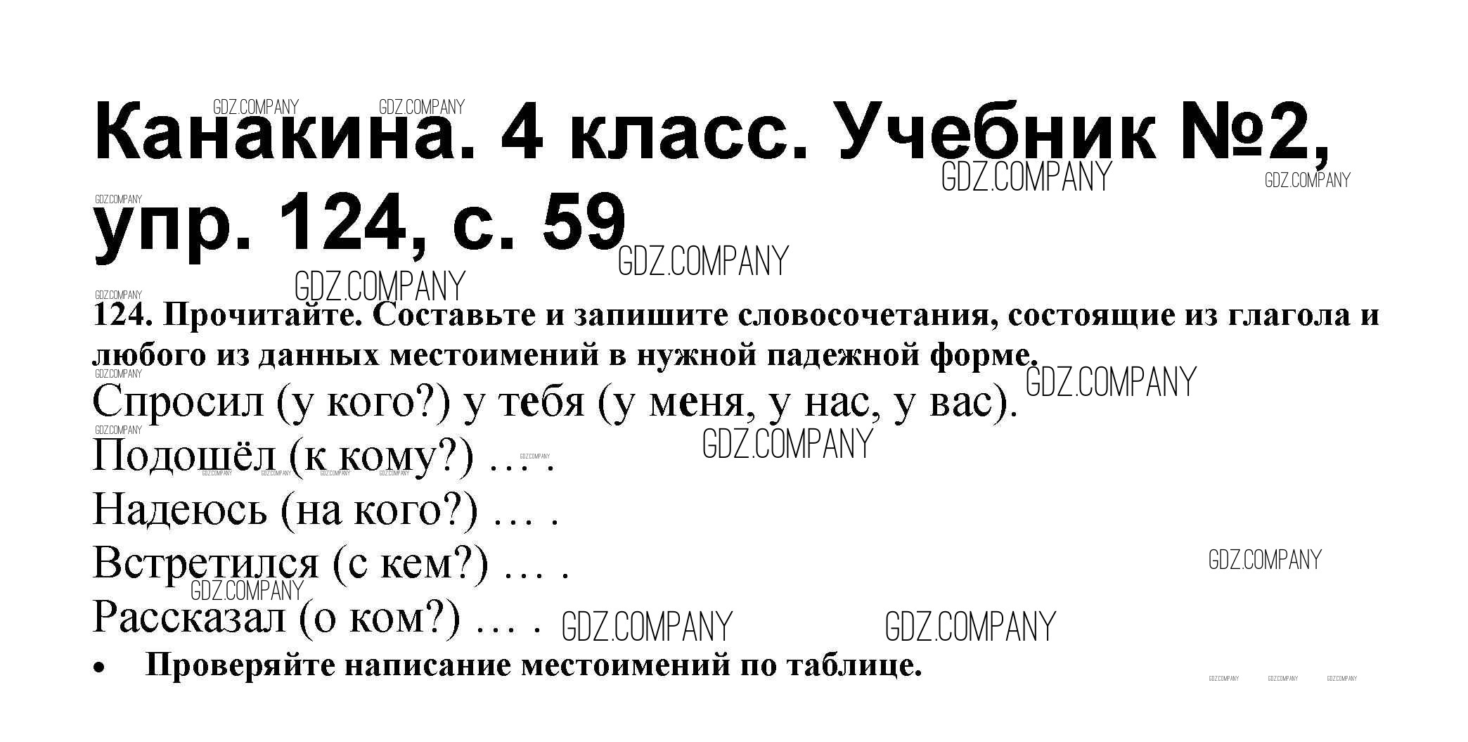 Здесь готовые ответы по Русскому языку за 4 (четвертый) класс от Канакина, Горецкий Учебник Школа России (издательство: Просвещение от 2015 г.) № 124