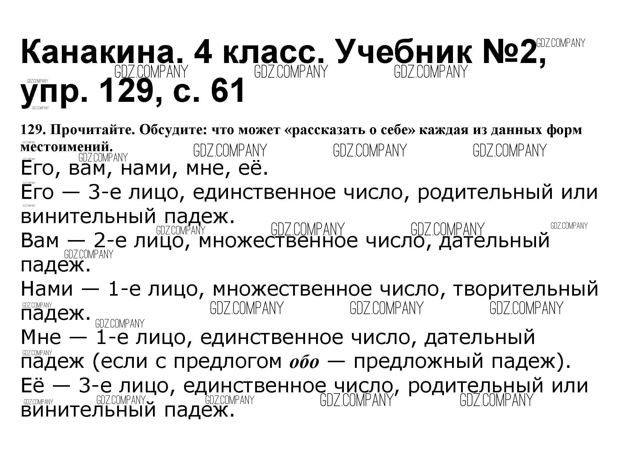 Здесь готовые ответы по Русскому языку за 4 (четвертый) класс от Канакина, Горецкий Учебник Школа России (издательство: Просвещение от 2015 г.) № 129