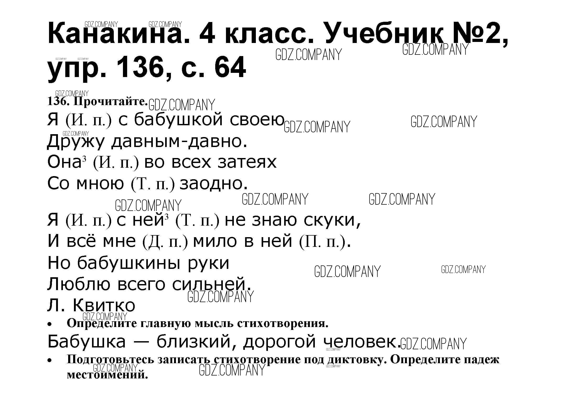 Здесь готовые ответы по Русскому языку за 4 (четвертый) класс от Канакина, Горецкий Учебник Школа России (издательство: Просвещение от 2015 г.) № 136