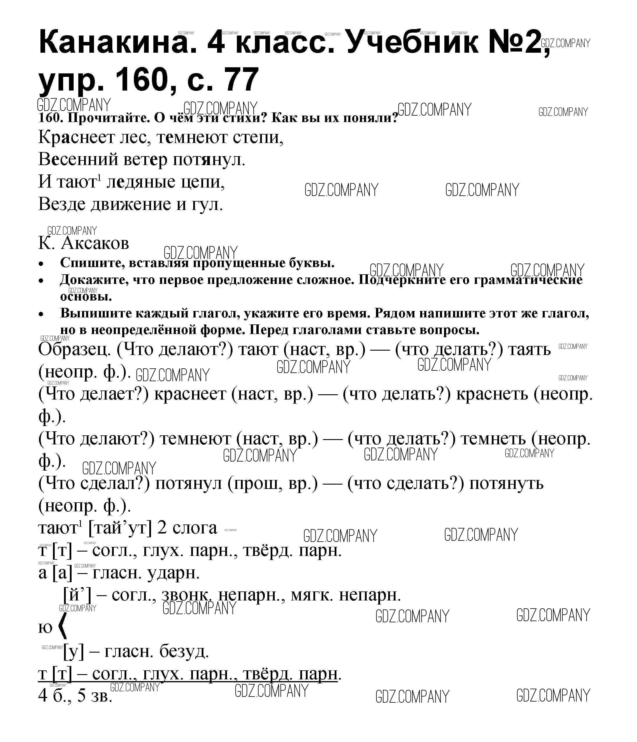 Здесь готовые ответы по Русскому языку за 4 (четвертый) класс от Канакина, Горецкий Учебник Школа России (издательство: Просвещение от 2015 г.) № 160