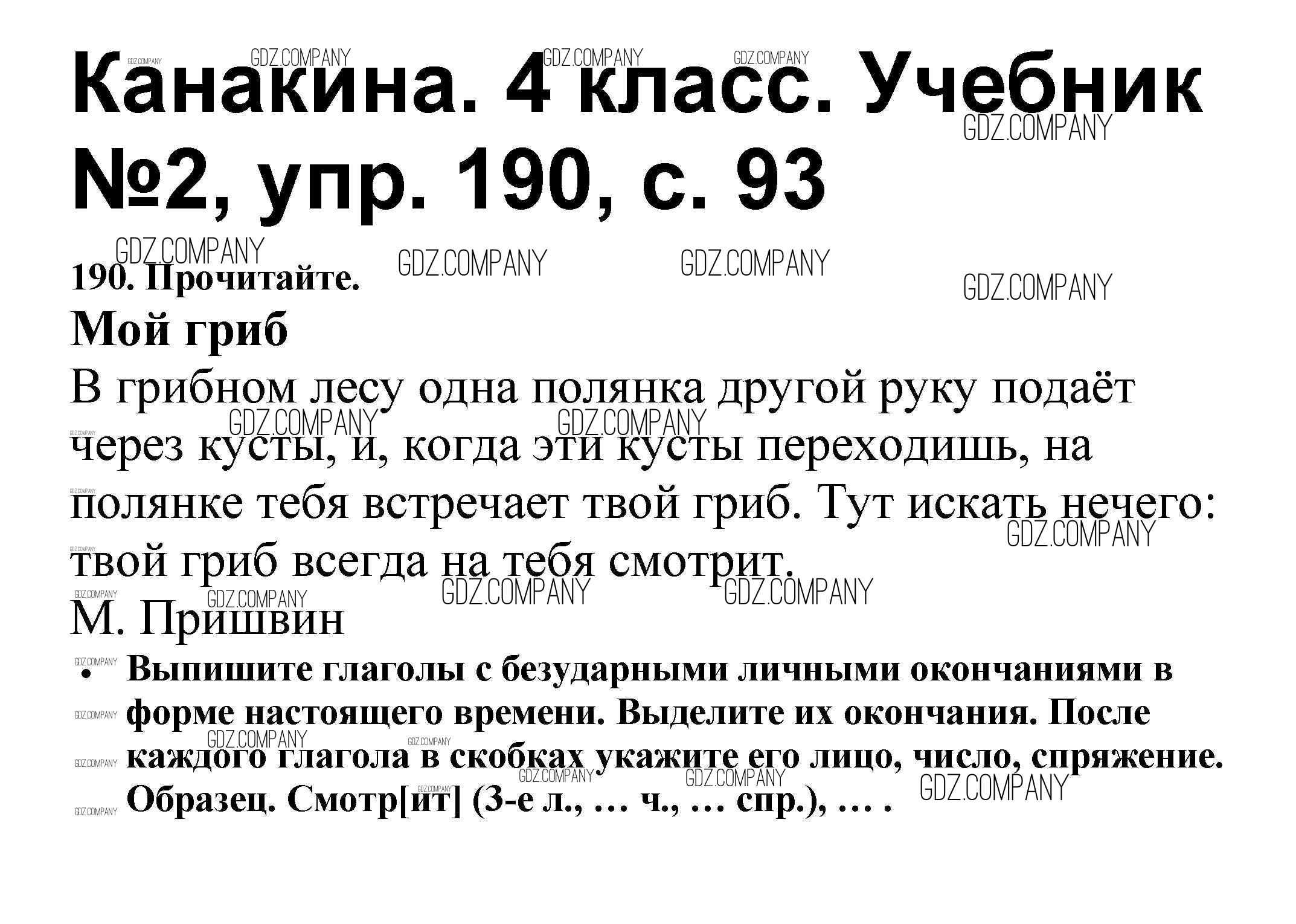 Здесь готовые ответы по Русскому языку за 4 (четвертый) класс от Канакина, Горецкий Учебник Школа России (издательство: Просвещение от 2015 г.) № 190