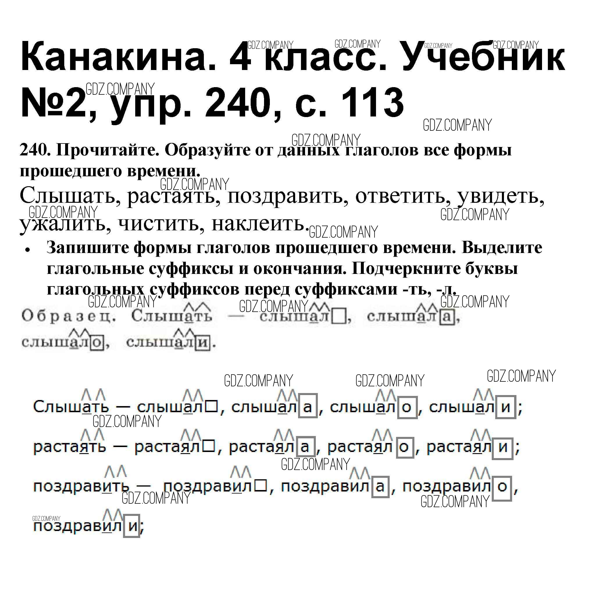 Здесь готовые ответы по Русскому языку за 4 (четвертый) класс от Канакина, Горецкий Учебник Школа России (издательство: Просвещение от 2015 г.) № 240