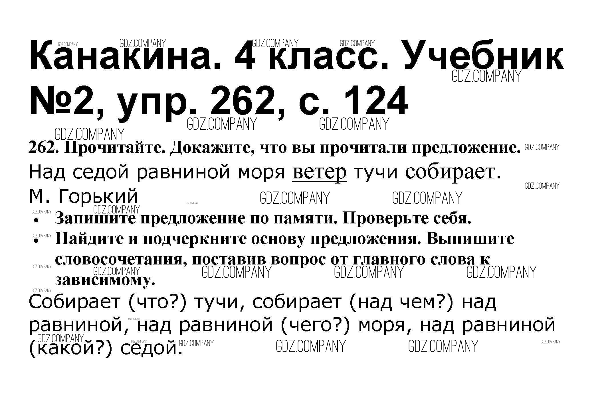 Здесь готовые ответы по Русскому языку за 4 (четвертый) класс от Канакина, Горецкий Учебник Школа России (издательство: Просвещение от 2015 г.) № 262