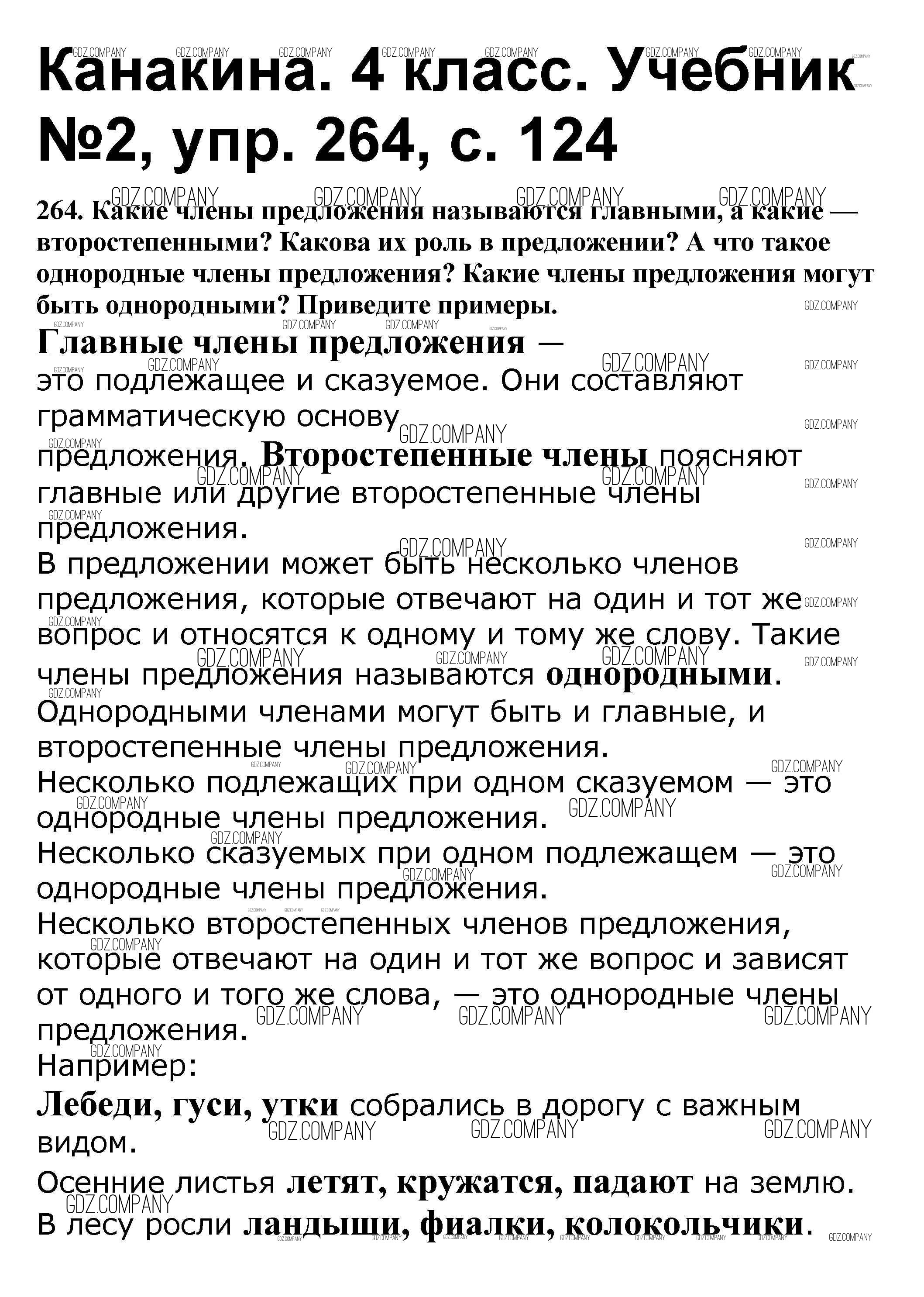 Здесь готовые ответы по Русскому языку за 4 (четвертый) класс от Канакина, Горецкий Учебник Школа России (издательство: Просвещение от 2015 г.) № 264