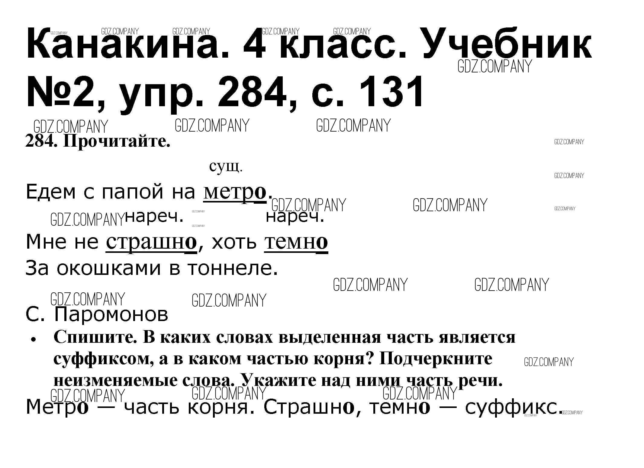 Здесь готовые ответы по Русскому языку за 4 (четвертый) класс от Канакина, Горецкий Учебник Школа России (издательство: Просвещение от 2015 г.) № 284